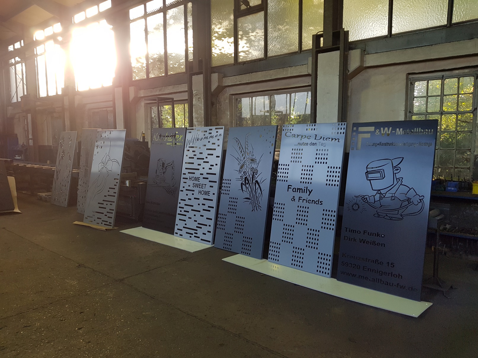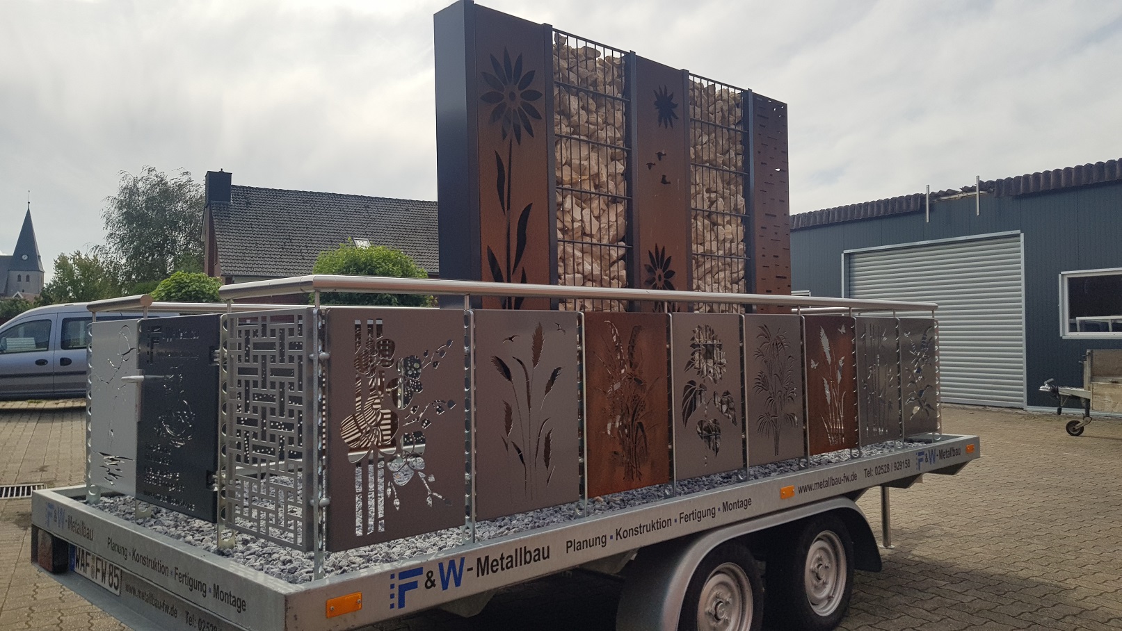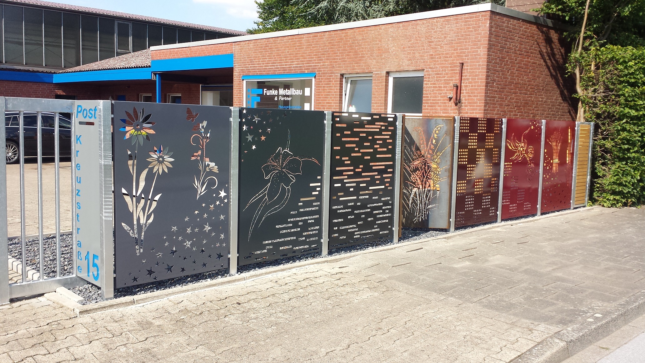 Schmuckbleche in verschiedenen Größen mit unterschiedlichen Mustern, in den unterschiedlichsten RAL Tönen Pulverbeschichtet oder aber Cortenstahl. Ihre Wünsche, Ihre Ideen geben uns neue Herausforderungen um Ihnen individuelle, passende Lösungen für Ihr Projekt zu präsentieren.