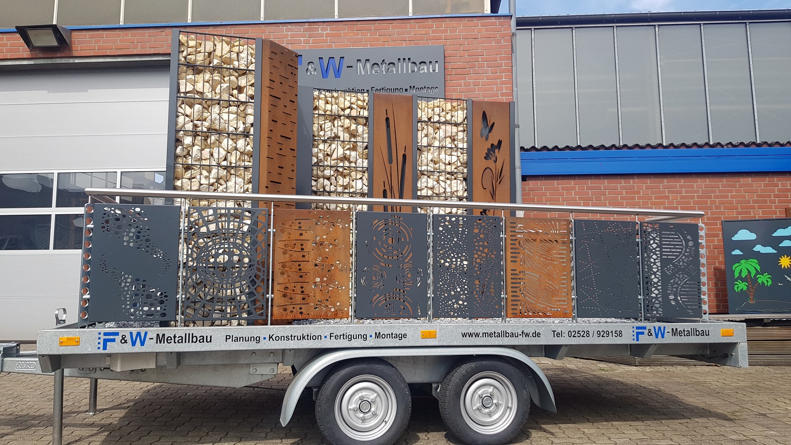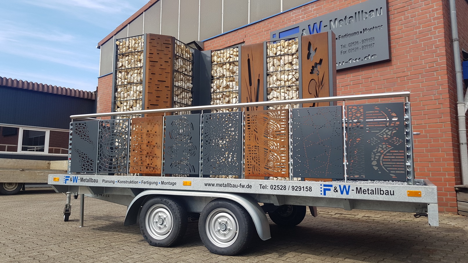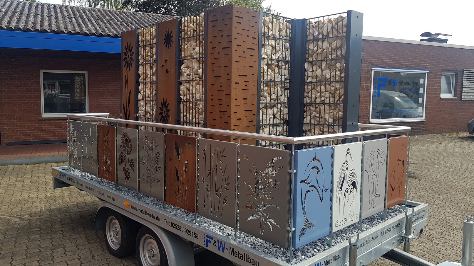 Schmuckbleche in verschiedenen Größen mit unterschiedlichen Mustern, in den unterschiedlichsten RAL Tönen Pulverbeschichtet oder aber Cortenstahl. Ihre Wünsche, Ihre Ideen geben uns neue Herausforderungen um Ihnen individuelle, passende Lösungen für Ihr Projekt zu präsentieren.